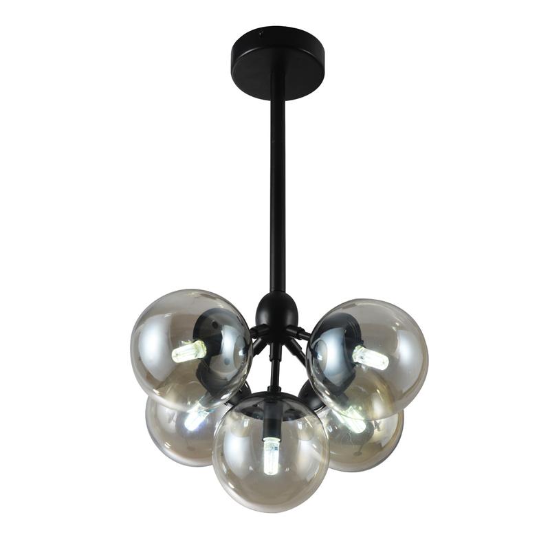 Decorative Modern Ceiling Lamp 5xg9-40w (not Included) Diameter: D-60cm H-70cm, Finished In Matt Black Metal + Glass, Brand Home Delight.